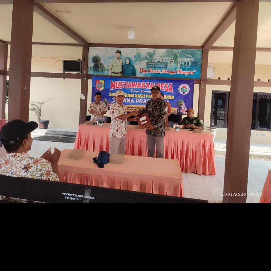 Bertempat di pendopo kantor Desa Karangduren pada hari ini dilaksanakan giat Musyawarah Desa Serah Terima (MDST).giat ini dilaksanakan sebagai laporan bahwasanya kegiatan pembangunan sarana dan prasarana tahun 2023 telah selesai. sehingga dengan adanya penandatanganan berita acara mdst dari PKA Ke Kades dan hasilnya di serahkan ke bpd selaku perwakilan dari masyarakat. dengan telah di serahkannya berita acara ini maka segala sarana prasarana yang telah di bangun sudah menjadi milik warga masyarakat desa karangduren. besar harapan kami warga bisa menjaga semua sarana prasarana tersebut. giat ini di hadiri oleh BPD,LPM, Ketua RW, Tokoh Masyarakat di wilayah Proyek Pembangunan dan juga perwakilan Kecamatan Balung.