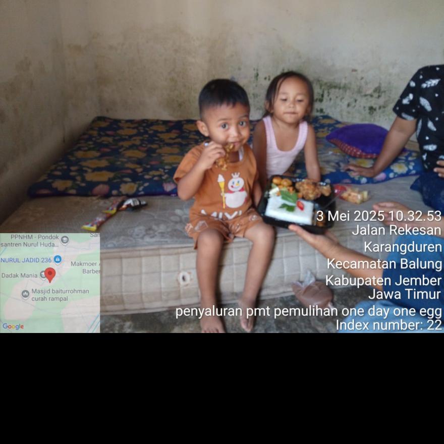 Karangduren, 2 mei 2025 bertepatan dengan Hari Pendidikan Nasional desa karangduren juga mengawali Langkah untuk pencegahan stunting yaitu penyaluran PMT One Day One egg. Di mana keg ini akan berlangsung selama 60 hari kedepan. PMT yang di salurkan berupa makanan siap makan yang di masak oleh ibu - ibu anggota RDS dan menu yang sajikan juga di awasi oleh ahli gizi. PMT ini di antarkan door to door ke sasaran stunting.Harapan kedepan semoga angka Stunting berkurang bahkan menjadi zero stunting.